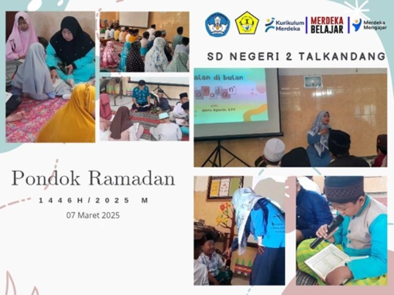 Jumat, tujuh Maret dua ribu dua puluh lima. Kegiatan Pondok Ramadan di SD Negeri dua Talkandang memasuki hari kedua dengan penuh semangat dan antusiasme dari para siswa. Rangkaian kegiatan diawali dengan salat Dhuha berjamaah, yang diikuti oleh seluruh siswa dan guru dengan khusyuk. Pada kesempatan ini, Bu Gieta Agustin, S.Pd. hadir sebagai pemateri dengan membawakan materi bertema "Amalan - Amalan di Bulan Ramadan" kepada para siswa. Dalam pemaparannya, Bu Gieta menjelaskan berbagai amalan yang dapat dilakukan selama bulan suci Ramadan, seperti berpuasa dengan ikhlas, membaca Al-Qur’an, bersedekah, I’tikaf, serta meningkatkan kepedulian sosial. Para siswa tampak antusias mendengarkan dan berpartisipasi dalam sesi diskusi. Setelah penyampaian materi, suasana semakin meriah dengan kegiatan ice breaking "Tepuk Puasa", yang membuat siswa semakin bersemangat. Selain itu, sesi tanya jawab seputar Ramadan juga berlangsung seru, di mana siswa diberi kesempatan untuk bertanya dan berbagi pengalaman mereka dalam menjalankan ibadah Ramadan.